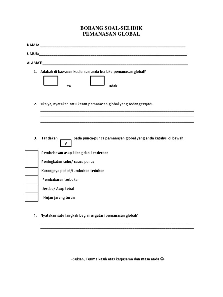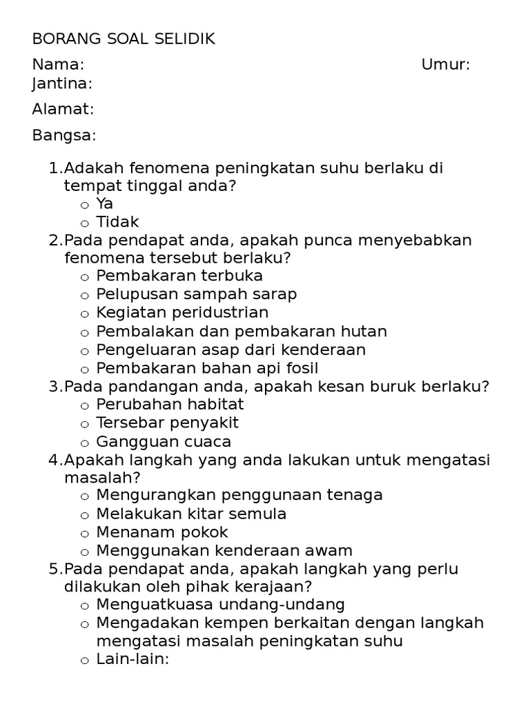 Borang Soal Selidik Tentang Peningkatan Suhu Pdf